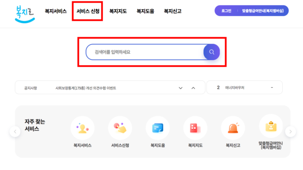 복지로 홈페이지